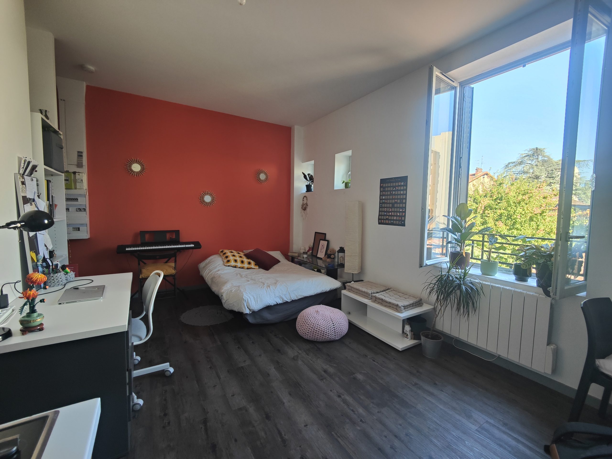 Il se compose d’une entrée avec placard qui donne sur un salon séjour de 20m² ouvrant sur une cour intérieure,